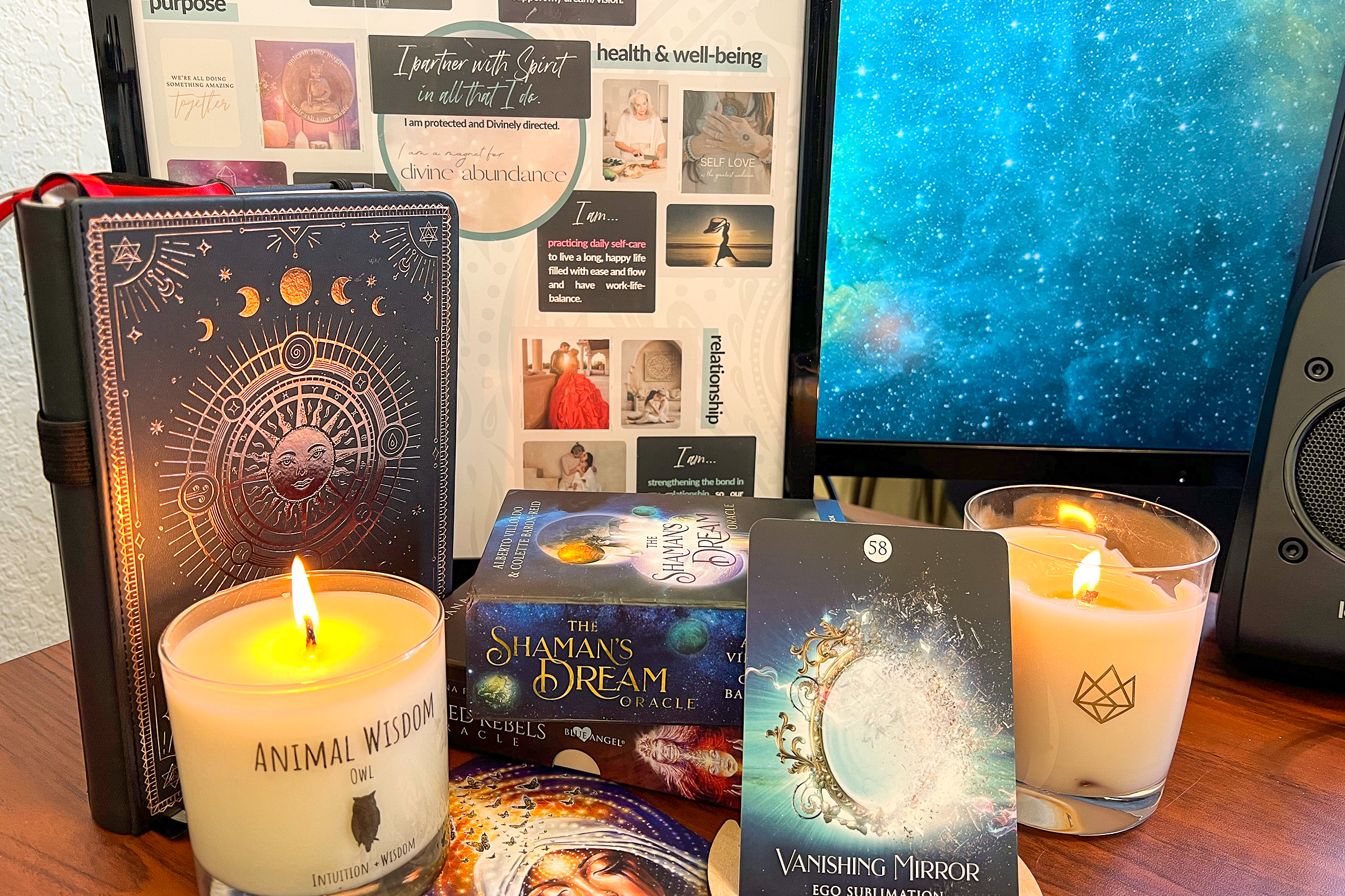 Today’s card was from The Shaman’s Dream Oracle by Colette Baron-Reid – #58 “Vanishing Mirror”. Not gonna lie here… as I turned to the page in the book, I was totes mcgoats a bit nervous about what I was going to read. But quickly my nerves were assuaged and relief released my shoulders.