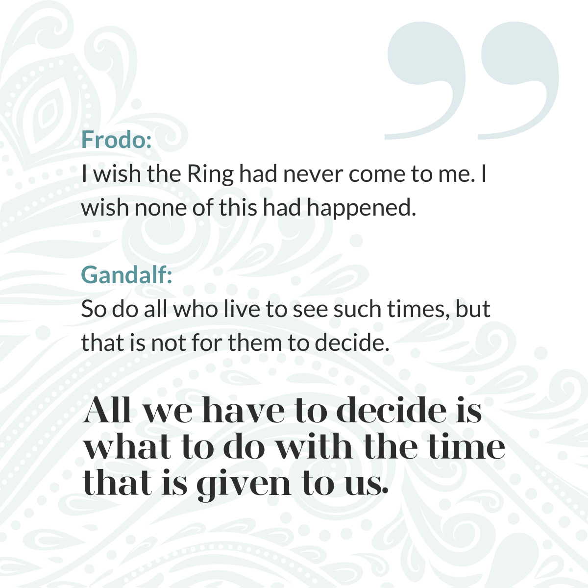 This story of hope, strength, and courage — that even the smallest person can make a big ripple in this big, wide world speaks to my soul. Lord of the Rings got me through some pretty rough times… finding courage in an abusive relationship and finding strength while my dad transitioned from this world. I found solace during Frodo and Gandalf’s conversation: